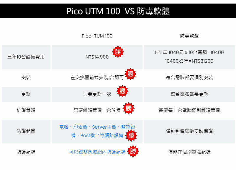 建議使用1個Pico-UTM保護50個或50個以下的設備。