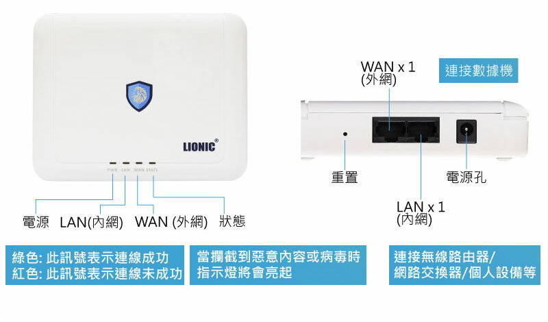 NETGEAR GS108 8埠Gigabit 交換器 / LIONIC Pico-UTM 100 防毒閘道器【防毒】【防駭客】【防惡意網站】