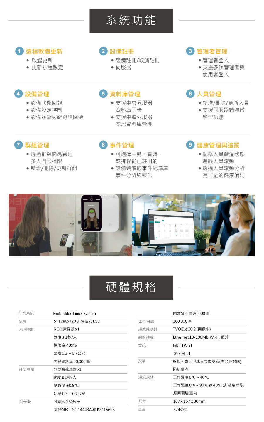 ★ 人臉識別/體溫感測/刷卡門禁,三大功能一體成型