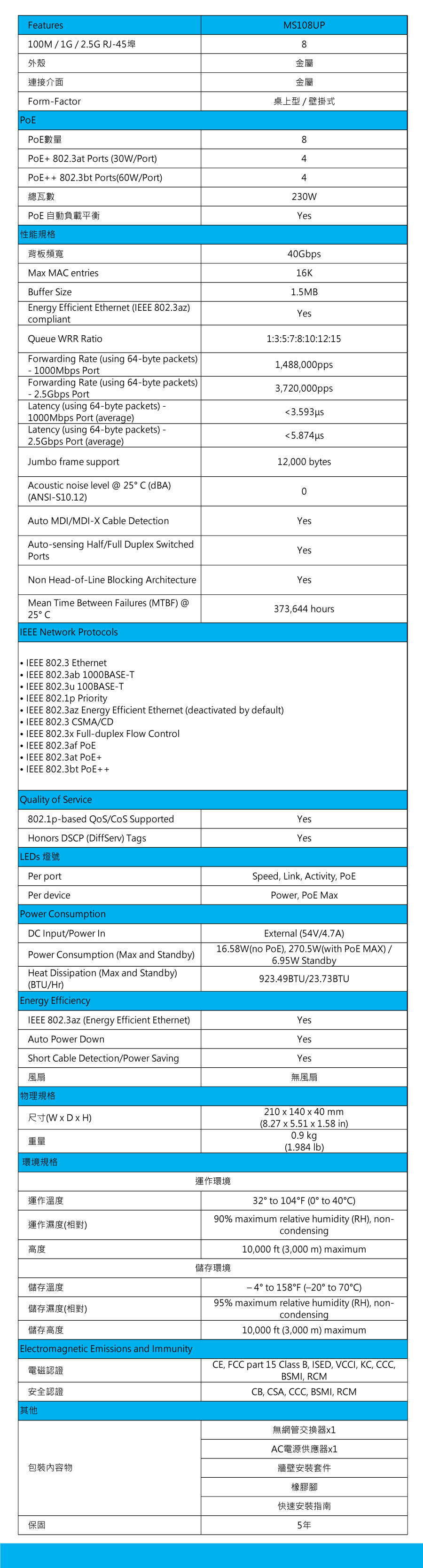 ★ 提供4個 UPoE(PoE++) 1G/2.5G 連接埠口