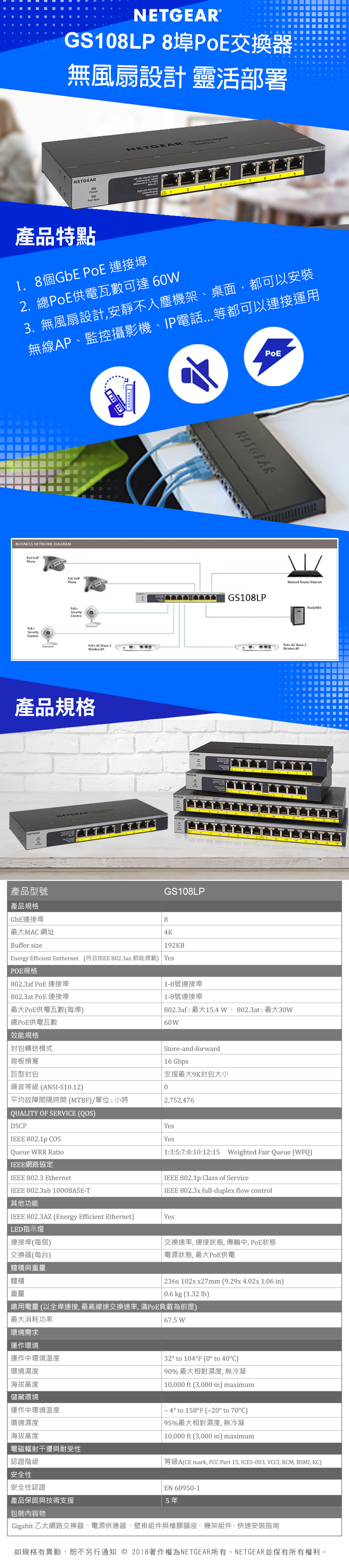 ★ 提供8個GbE RJ-45 PoE/PoE+連接埠