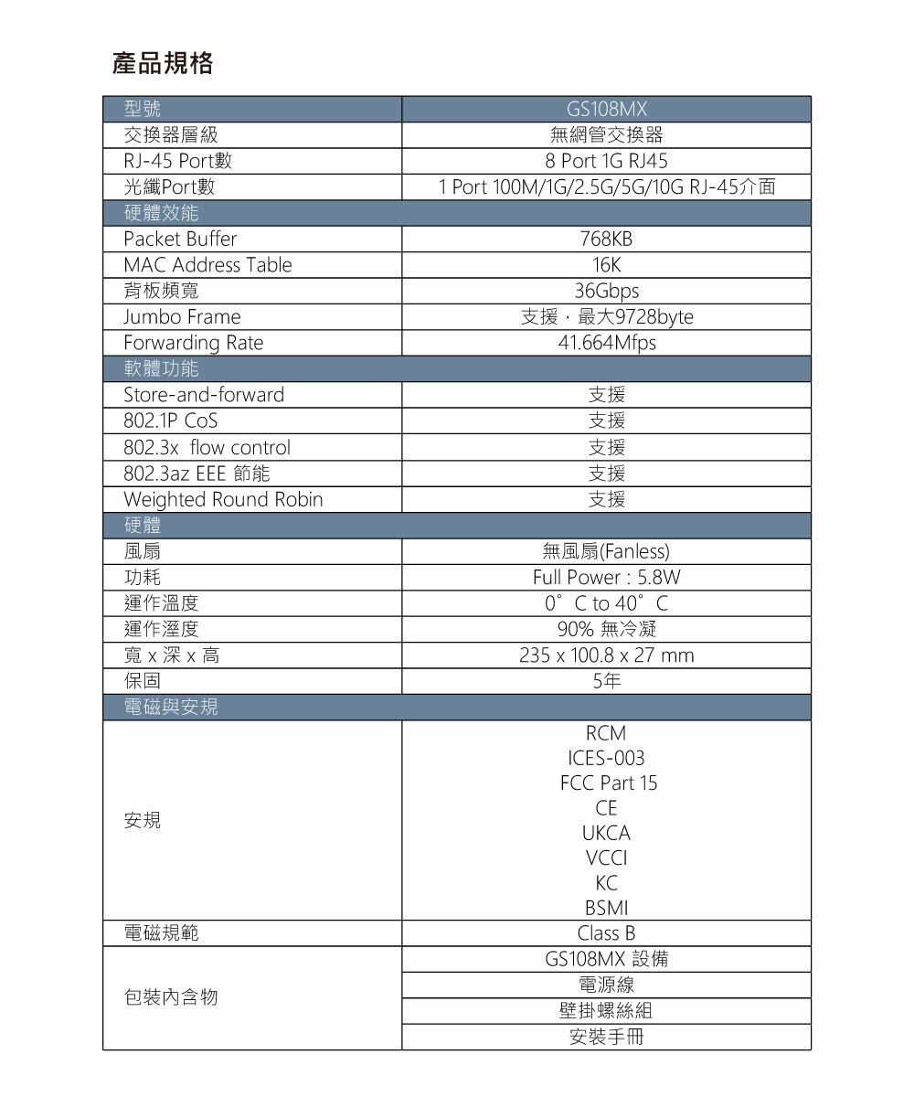 ★8 個1G RJ-45 連接埠