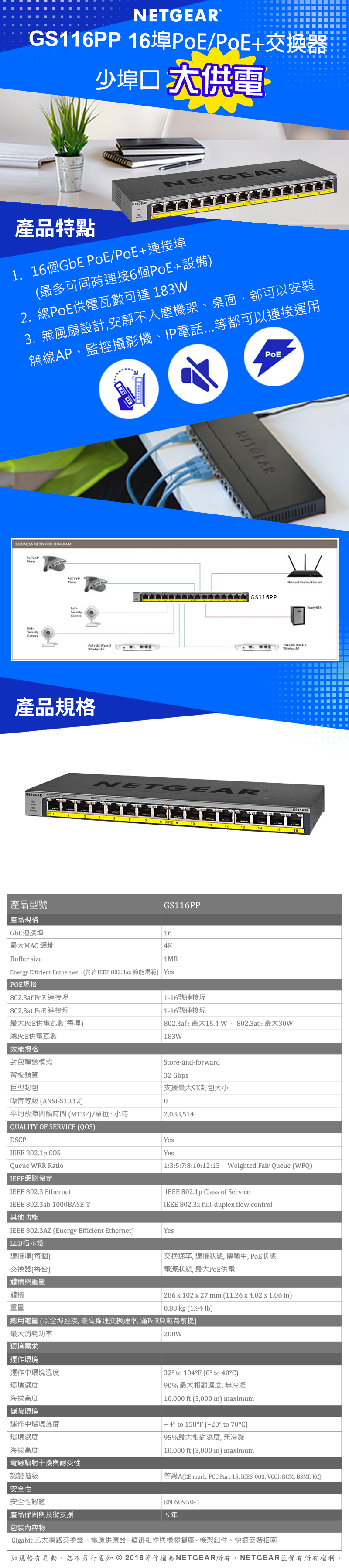 ★ 提供16個GbE RJ-45 PoE/PoE+連接埠