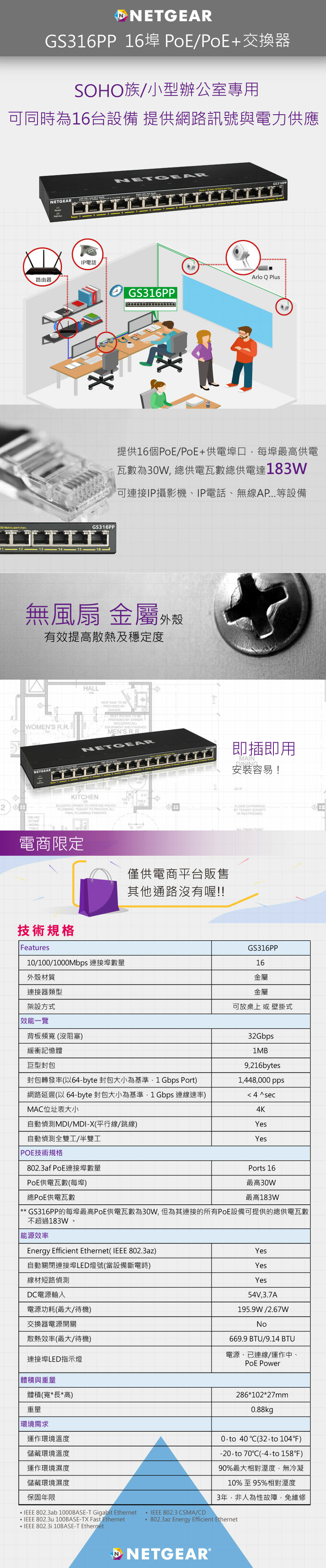 ★ 提供16個GbE PoE/PoE+ 連接埠,單埠最大輸出30W