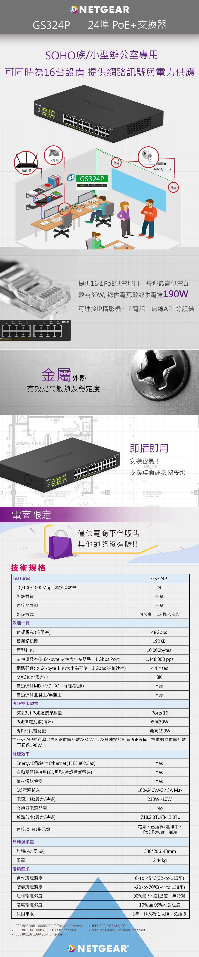 ★ 提供16個GbE PoE/PoE+ 連接埠