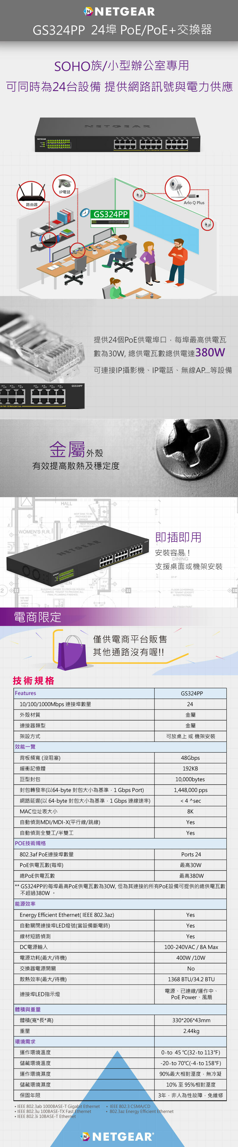 ★ 可連接IP攝影機、IP電話、無線AP…等設備