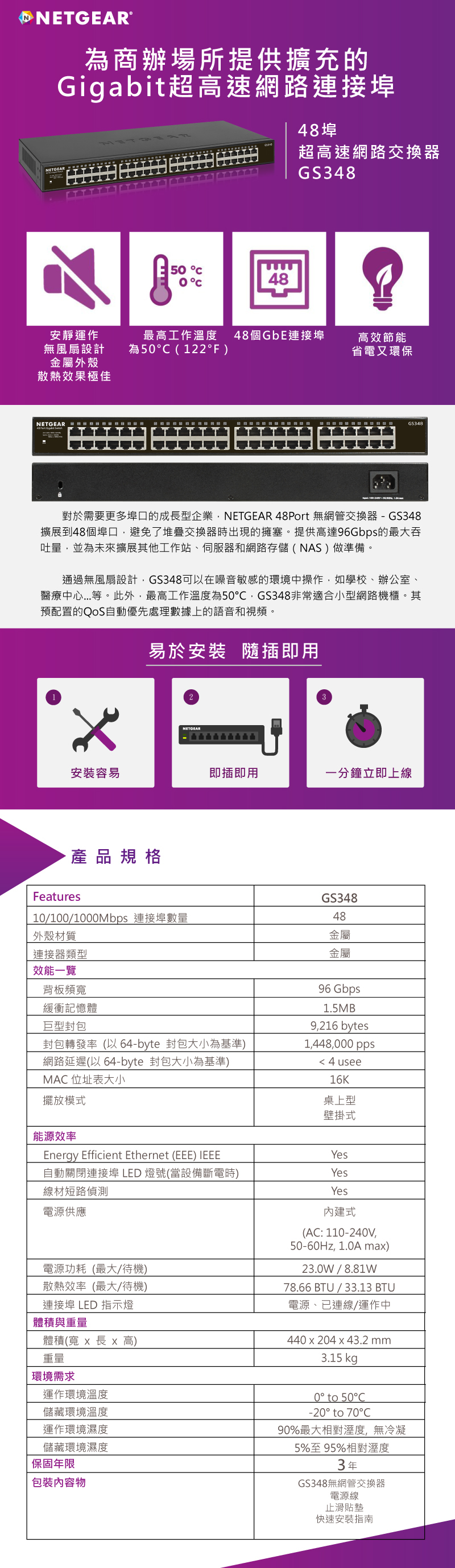 Netgear GS348 - 48埠 1000M GIGA Ethernet Switch 高速交換式集線器