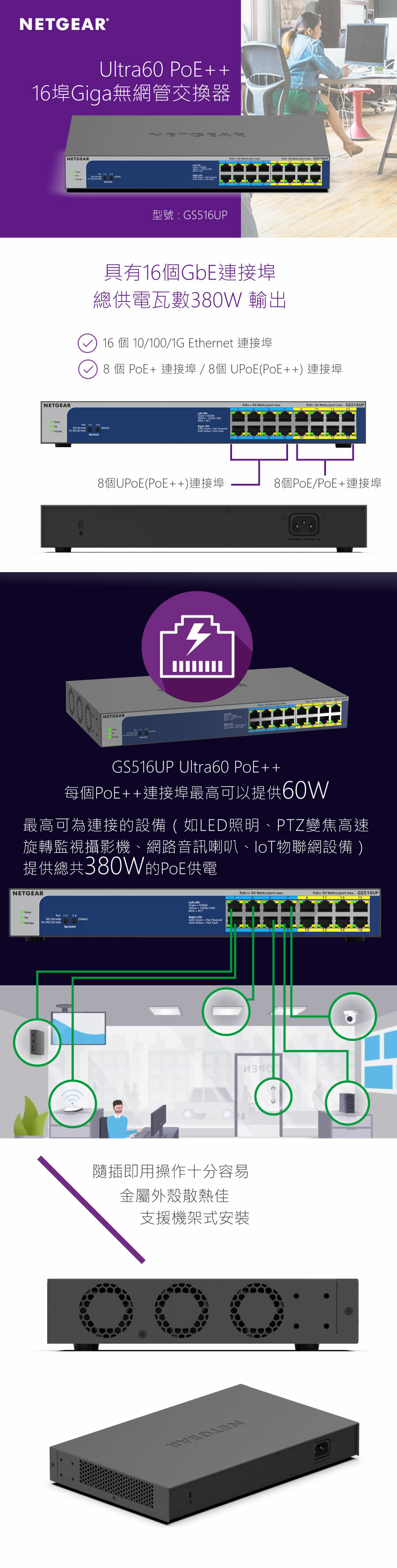 ★ 提供8個 PoE/PoE+ 連接埠,8個支援 UPoE(PoE++) 供電