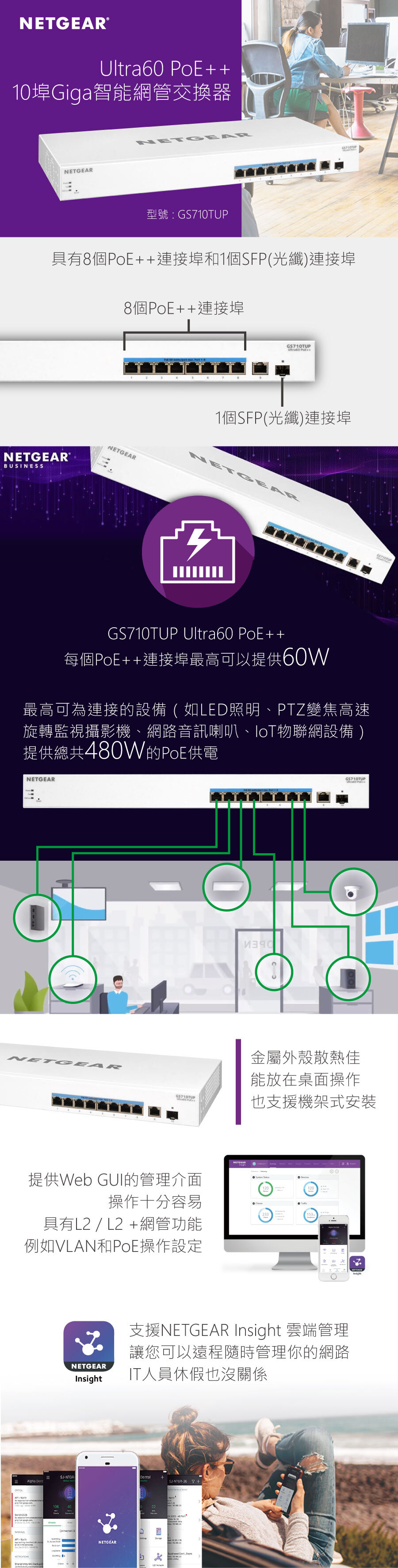 ★提供8個PoE/PoE+ 連接埠,8個支援UPoE(PoE++)供電