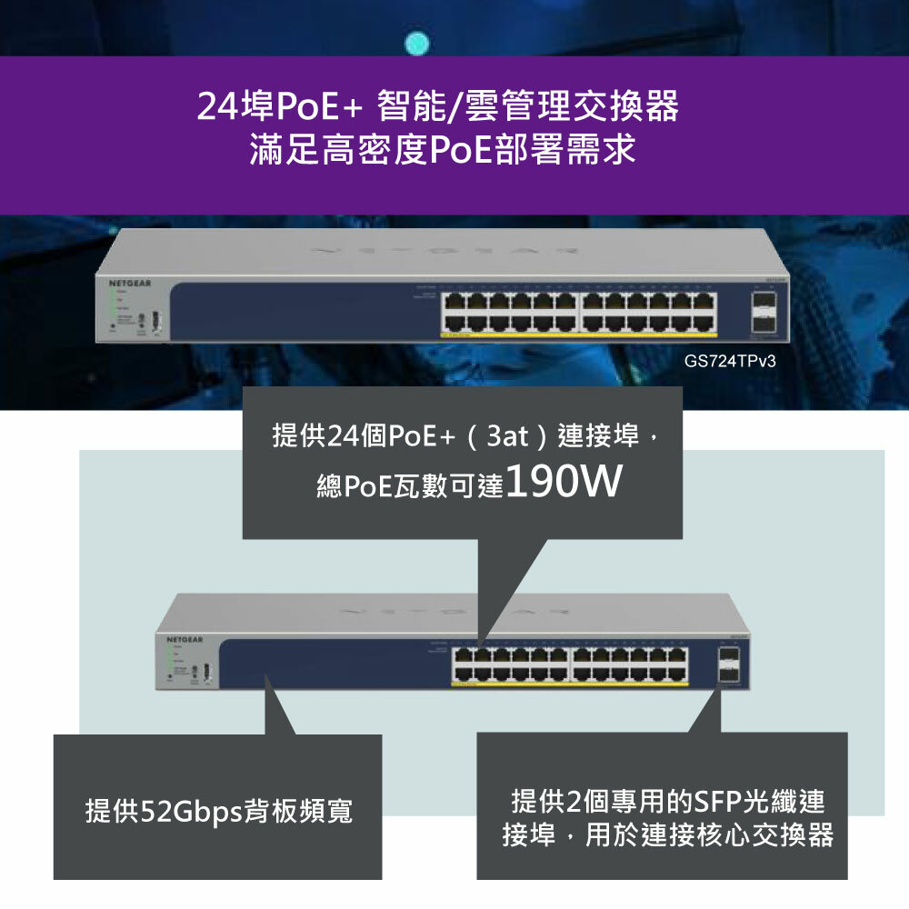★ 提供24個PoE+連接埠