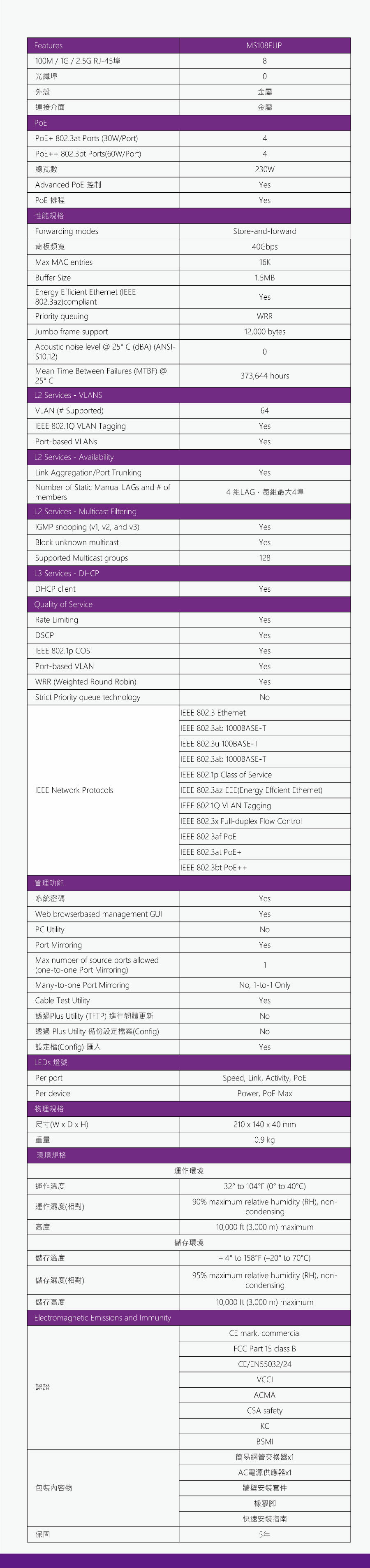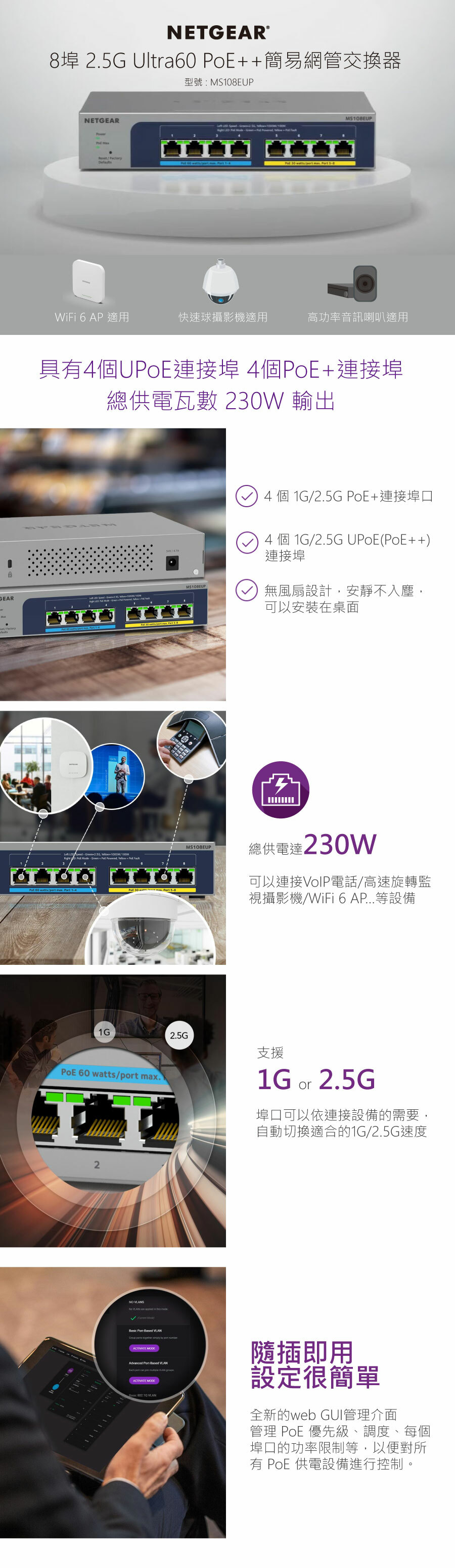 ★ 提供4個 UPoE(PoE++) 1G/2.5G 連接埠口