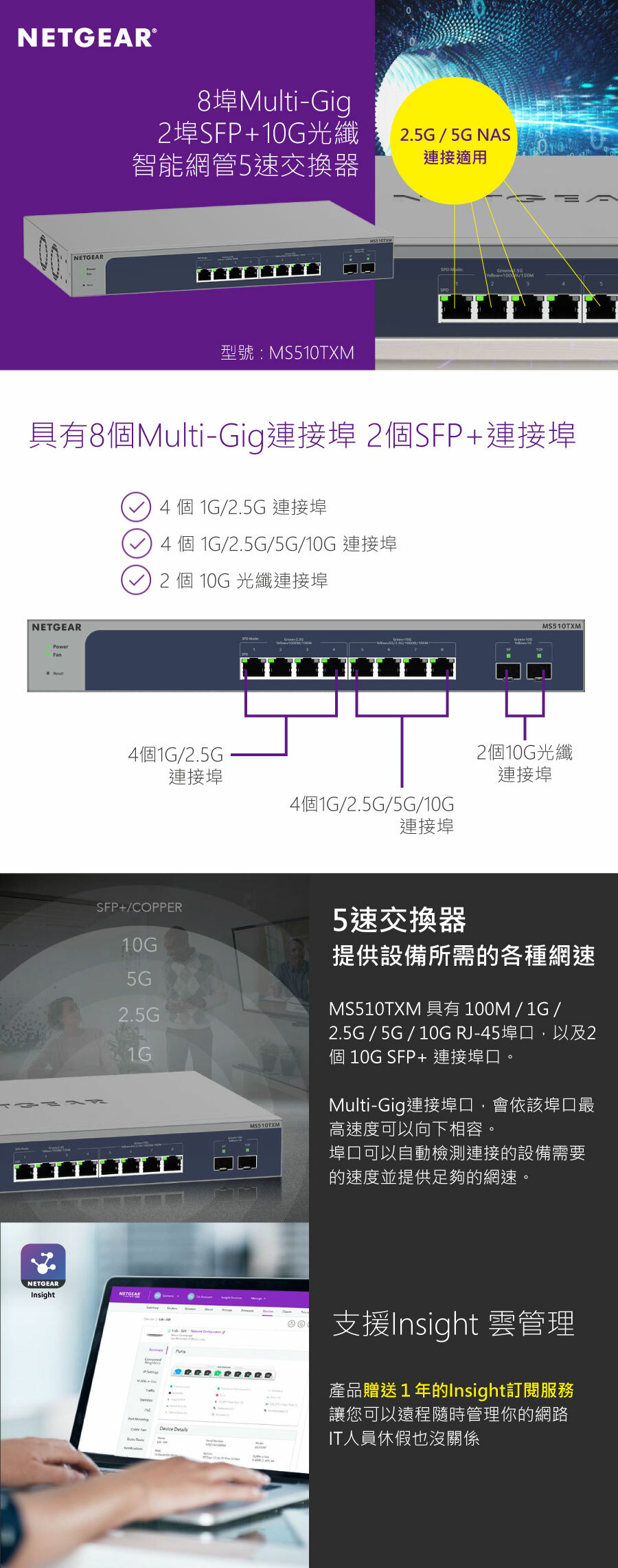 ★ 提供4個 100M/1G/2.5G/5G/10GBASE-T 連接埠口