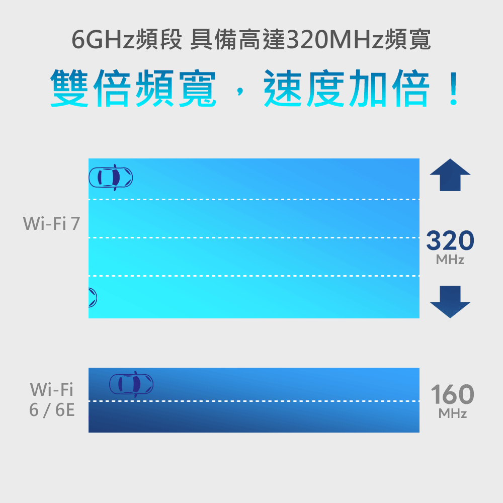 ✅頻寬加倍│支援320MHz 雙倍頻寬速度加倍