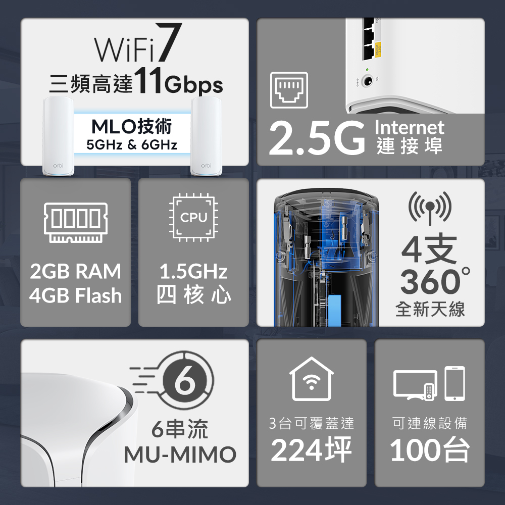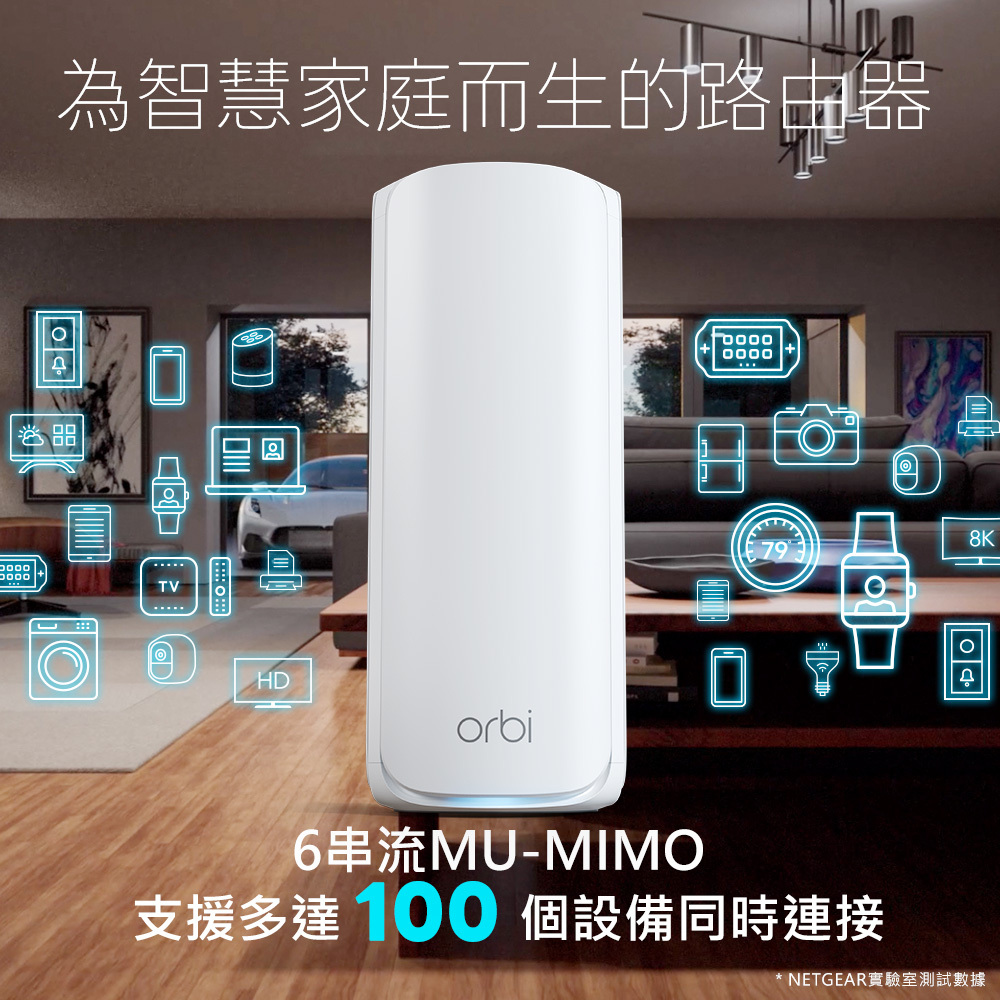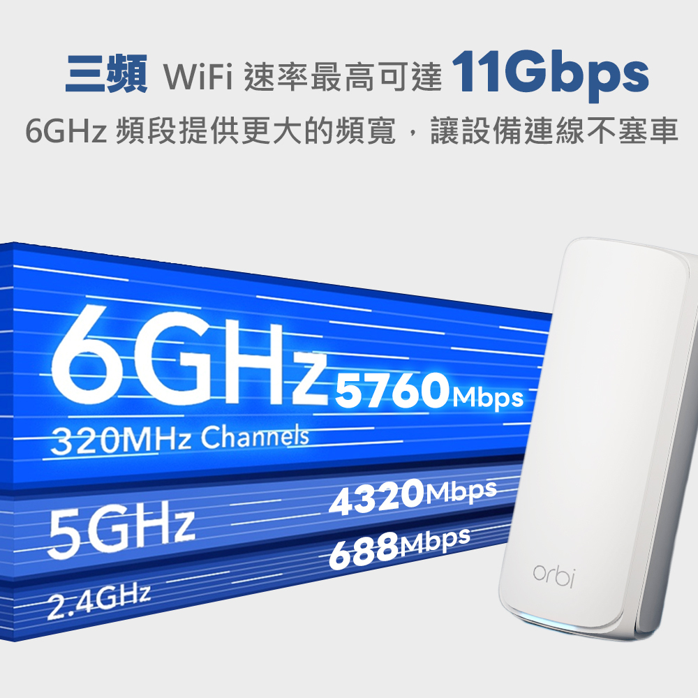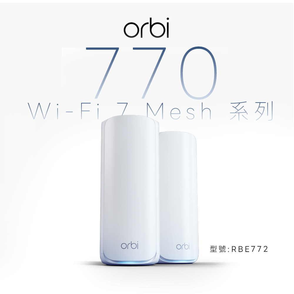 NETGEAR Orbi RBE772 BE11000 三頻 WiFi 7 Mesh 延伸系統 路由器+1衛星 (星盾白)