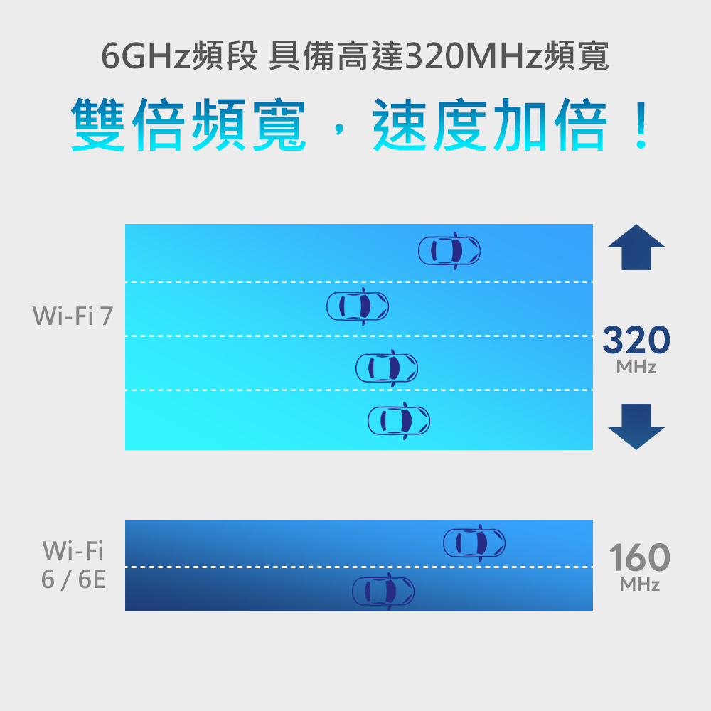 ✅頻寬加倍│支援320MHz 雙倍頻寬速度加倍