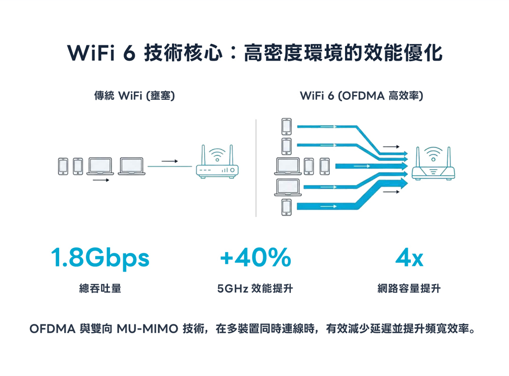 ★雙頻 WiFi 6 總吞吐量1.8Gbps