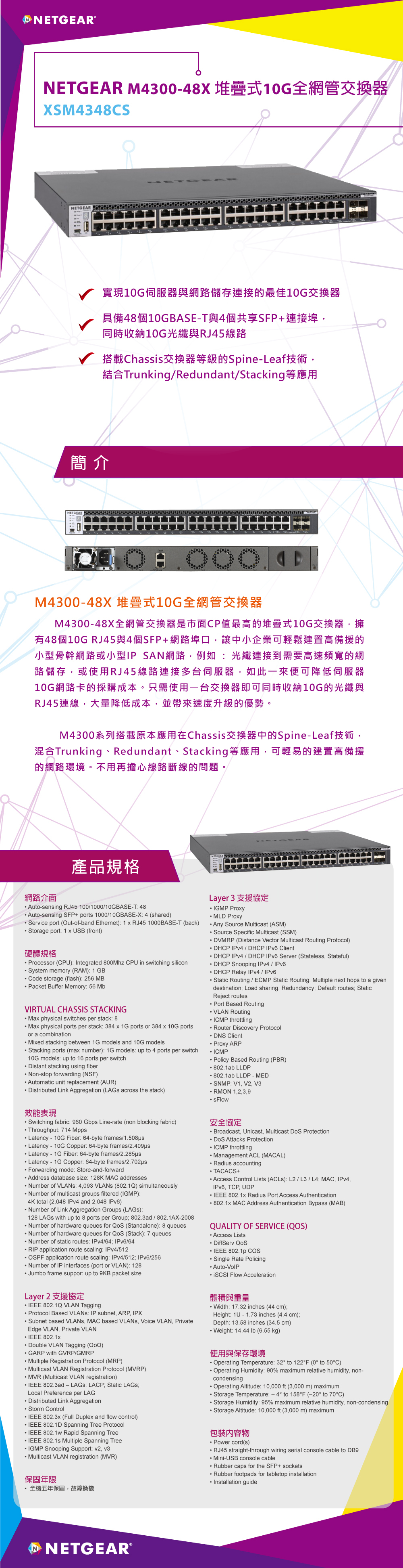 ★48個100M/1G/10G RJ45與4個SFP+網路埠口(Shared)